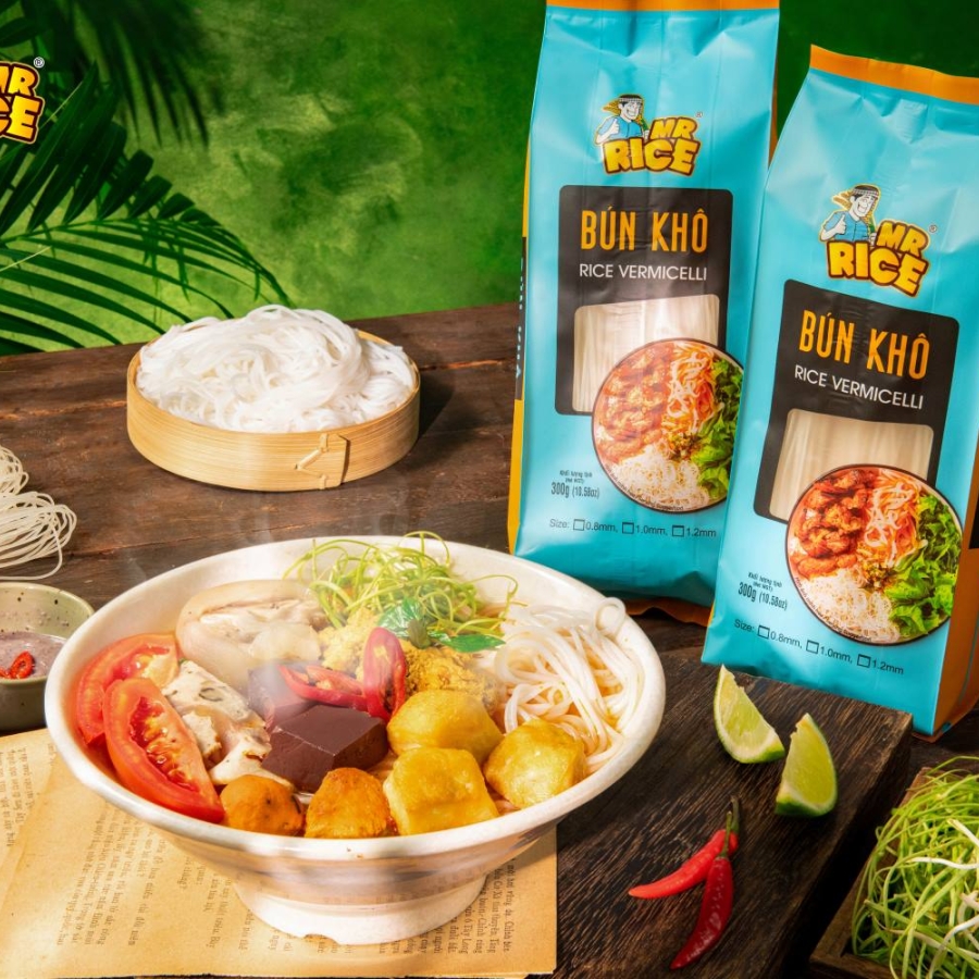 Mr. Rice Dried Vermicelli 300g is a dry rice noodle product commonly used to prepare dishes such as bún bò Huế, bún chả, and other Vietnamese noodle dishes. It is a convenient and easy-to-use ingredient for everyday cooking.