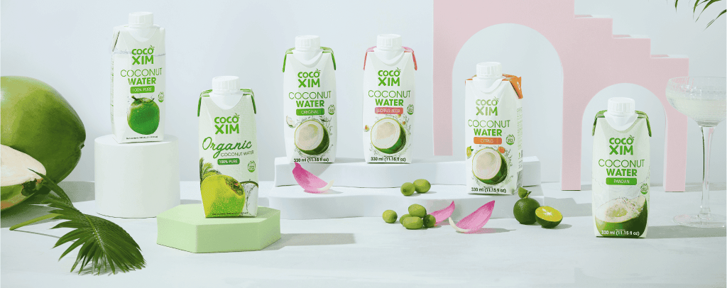Coconut water has long been considered a natural, healthy tropical drink that contains a bunch of nutrients such as vitamins, minerals, electrolytes, amino acids, and phyto-hormones. To capture this natural gift, Cocoxim coconut water is sustainably harvested from fertile coconut palms to ensure the highest quality and freshness. It is then processed and packaged using the most advanced technology to preserve the wholesomeness of nature.